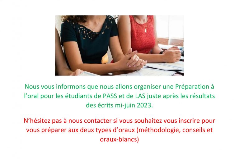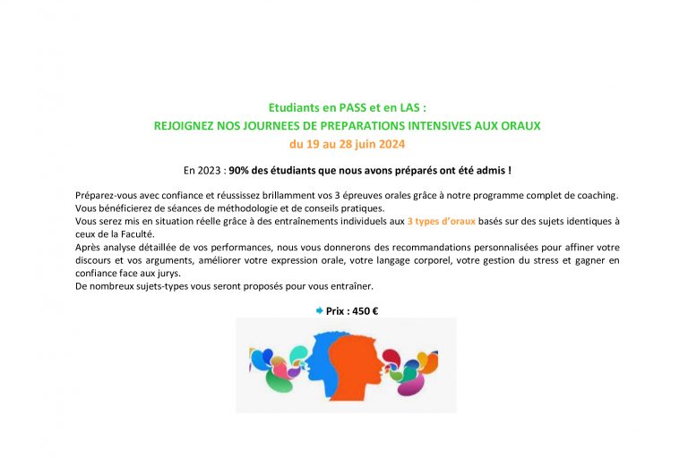 Comme l’an dernier, avec beaucoup de succès, CONCOURS SUP propose une préparation complète aux ORAUX très rapidement après les résultats des écrits mi-juin 2023 pour les étudiants en PASS et…