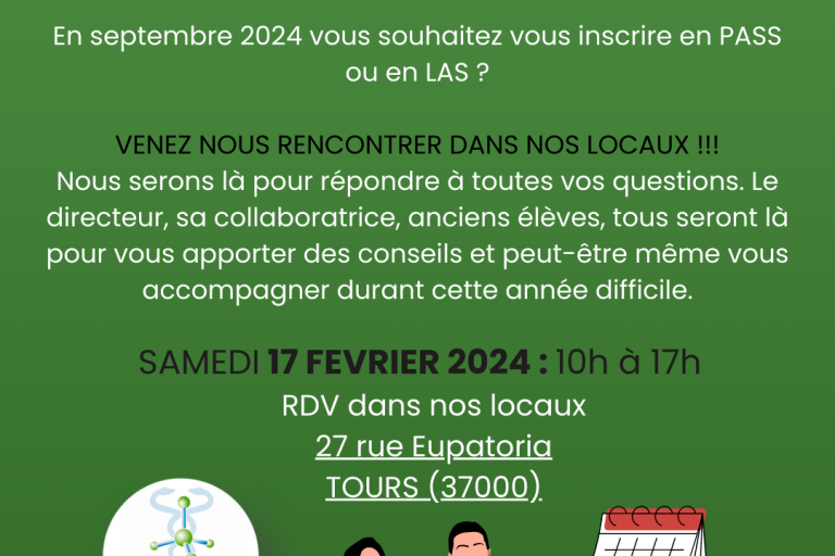Seul ou en famille, la journée portes ouvertes du samedi 17 Février 2024 sera pour vous l’occasion de rencontrer nos enseignants et quelques uns de nos anciens étudiants ayant réussi…